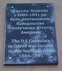 18 червня 2013 року посол США в Україні Джон Теффт урочисто відкрив меморіальну дошку в пам'ять про Американське консульство в Одесі на будівлі (провулок Чайковського, 6), в якій консульство працювало з 1884 по 1891 рр.