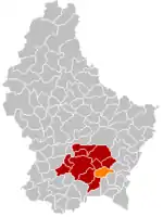 | Комуна Контерн (помаранчевий), кантон Люксембург (темно-червоний) та округ Люксембург (темно-сірий) на карті Люксембургу | ||||