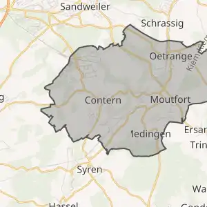 ![]() Комуна Контерн (помаранчевий), кантон Люксембург (темно-червоний) та округ Люксембург (темно-сірий) на карті Люксембургу | ||||