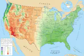 Зовні континентальні штати нагадують витягнутий з заходу на схід прямокутник.