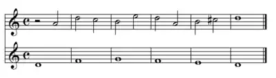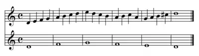 - Перший — «нота проти ноти» (лат. punctum contra punctum): тут ритм «доданого голосу» (протиставлення) ідентичний до ритму основного голосу (cantus firmus).