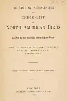 - The Code of Nomenclature and Check-list of North American Birds Adopted by the American Ornithologists' Union. New York: American Ornithologists' Union. 1886. doi:10.5962/bhl.title.1538. Проігноровано невідомий параметр