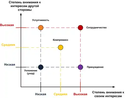 Кеннет Томас спільно з Ральфом Киллменом виділяють п'ять основних стратегій поведінки в конфліктних ситуаціях: