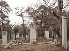 На відстані 1 км на північ від маєтку Конфуція, поза міською стіною Цюйфу, знаходиться Ліс Конфуція. Це величезний парковий комплекс, який є родовим кладовищем роду нащадків Конфуція (роду Кун). Тут покоїться прах самого Вчителя і тисяч його нащадків. В даний час на території цього цвинтаря, площа якого 2 кв. км, налічується понад 100 тис. могил, 3600 надгробних каменів, 200 статуй, 30 будівель та понад 5000 кам'яних стел[4] з епітафіями. Серед них виділяються поховання «князів Яньшенських» (Яньшен-гун) — нащадків Конфунція по старшій лінії, які займали роль феодальних правителів Цюйфу і глав роду Кун. Їхні могили, як і поховання деяких інших особливо видатних членів роду Кун, відзначені меморіальними черепахами, стелами і кам'яними статуями (скульптури людей і тварин).
