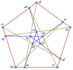 Будь-які шість точок у загальному положенні в чотиривимірному просторі дають 15 точок, які визначаються перетином прямих, що проходять через дві точки, з гіперплощинами, визначеними іншими чотирма точками. Таким чином, двійки відповідають один до одного цим отриманим 15 точкам. Будь-які три двійки, які разом утворюють набір, задають пряму, що є перетином трьох гіперплощин, які містять дві з трьох трійок з набору, і ця пряма містить усі точки, відповідні трьом двійкам набору. Таким чином, двійки і набори абстрактної конфігурації один до одного відповідають, у сенсі належності точок прямим, цим 15 точкам і 15 прямим, отриманим із початкових шести точок. Цю ж побудову можна спроєктувати в евклідів простір (3-вимірний) або на евклідову площину.[1]