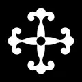 Родові емблеми Конісі — хрест (ліворуч) та «оберіг Ґіон» із хрестоподібною фігурою (праворуч). | ||