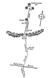 Завдяки мапі мандрівники зуміли подолати пустелю, ледь не загинувши від спраги, й гори, ледь не замерзши в снігах, й пробратися в долину, де живе народ кукуана, що розмовляє архаїчним діалектом зулу. Держава кукуанів добре організована, у них могутні воїни, а посеред їхньої землі пролягає дорога до копалень царя Соломона. Європейцям вдалося уникнути смерті, оскільки тубільці прийняли капітана Ґуда з його моноклем і вставною щелепою за чарівника.