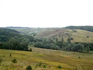 Схили практично позбавлені природного лісу внаслідок людської діяльності. Вони носять незначні сліди терасування і покриті лучно-степовими угрупуванням костриці борознистої[5] та менш чисельними угрупуваннями ковили волосистої. На схилах частково збереглись протиерозійні насадження з білої акації (робінії), шовковиці чорної, абрикосів.