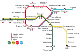 Система метрополітену відкрита 2002 року. На міжнародній конференції по метрополітену (англ. Metro Rail Conference) 2008 року копенгагенська підземна залізниця була визнана найкращою в світі.[5] Станом на 2021 рік копенгагенський метрополітен налічує чотирі лінії (M1, M2, М3, М4) з 39 станціями і при цьому постійно розвивається: 2019 року відкрили кільцевий маршрут М3, а 2021 лінію M4.[6]