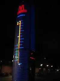 Покажчиком на станцію метро є встановлена на поверхні інформаційна колона. Висота колони 5 метрів, що забезпечує її видимість здалеку. Практично всю частину колони займає електронний дисплей, де міститься інформація про попередні і наступні станції лінії. Дизайн колони розроблений студією Knud Holscher Industriel Design.[15]