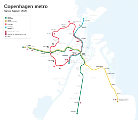 Метро Копенгагена — один із наймолодших метрополітенів світу, проекти яких були розроблені в першому десятилітті XXI століття.[2] На міжнародній конференції з метрополітенів (англ. Metro Rail Conference) 2008 року копенгагенську підземну залізницю визнали найкращою в світі.[3] Станом на 2021 рік данський метрополітен налічує чотири (4) лінії з 39 станціями, продовжуючи постійно розвиватися; так, в жовтні 2019 року відкрився кільцевий маршрут з іще двох нових ліній.[4]