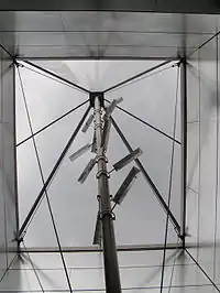 На підземних станціях, крім стандартних протипожежних заходів безпеки, в конструкції скляних пірамід використовується електричний шпиндель. В результаті основу піраміди підведено на 60 см, а в разі пожежі шпиндель забезпечить необхідне видалення диму під час евакуації.[15]
