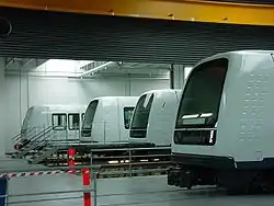 Було замовлено та введено в експлуатацію 34 трьохвагонні потяги[24] (з них на маршрутах, в робочій зоні, знаходиться не менше 18[25]). Довжина такого потяга 39 метрів, ширина — 2,65 м. Потяг створений під стандартну ширину колії в 1,435 м. Висота підлоги над рейкою становить 0,85 м, що збігається з висотою платформи (завдяки чому, люди в інвалідних візках або з возиком або велосипедом можуть потрапити у вагон без сторонньої допомоги). Корисне навантаження потяга становить 52 тонни. Максимальна швидкість, яку може розвинути — 80 кілометрів на годину (максимальне прискорення — 1,3 м/с ²). Середня швидкість з урахуванням зупинок — 40 км\г. Мінімальний допустимий часовий інтервал між потягами — 90 секунд.