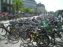 - Заборонено перевезення велосипедів в періоди з 07:00 до 8:30 і з 15:30 до 17:00 (час пік). У літні місяці, в період з 1 червня по 1 вересня, це правило не діє. Практично біля кожної станції метро мається організована парковка для велосипедів, а на станціях Ванлесе, Форум, Неррепорт, Конгенс-Нюторв, Крістіансгавн, Амагербро і Лерграуспаркен є спеціальні, обладнані відеоспостереженням, підвали для безкоштовного паркування.[35]