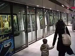 На підземних станціях, з вмонтованими розсувними дверима на платформу, відкриття і закриття дверей потягу і платформи синхронізовано за принципом підйомника, і так само контролюється підсистемою ATO. Дана система використовується в цілях безпеки, (запобігає падінню або стрибку пасажирів на рейки, підвищує безпеку для слабозорих пасажирів) і економічності (дешевше і краще контролювати вентиляцію на станціях і тунелях).[15]