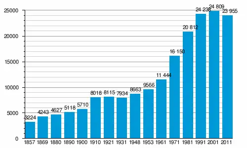 Населення громади за даними перепису 2011 року становило 30 854 осіб[2], 10 з яких назвали рідною українську мову[3]. Населення самого міста становило 23 955 осіб.[2]