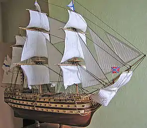 Останній в історії російського вітрильного флоту корабель з ім'ям «Полтава» — 84-гарматний лінійний корабель Балтійського флоту типу «Імператриця Олександра». Був закладений 5 грудня 1828 року на стапелі Нового адміралтейства в Санкт-Петербурзі, спущений на воду 12 жовтня 1829 року. У 1848—1850 роках брав участь в експедиції балтійського флоту до берегів Данії. У 1853—1856 — у Кримській війні: здійснював первезення військ в акваторії Балтійського моря. Виключений зі списків кораблів флоту 21 березня 1860 року[4].