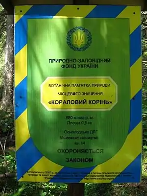 - Ботанічна пам'ятка природи місцевого значення «Кораловий корінь»