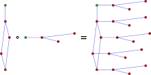 Формальніше, припустимо, що V(G) = {g1, ..., gn}, V(H) = {h1, ..., hm} і що коренем графу H є . Визначимо добуток