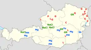 В А. є великі родовища магнезиту, головним чином в Каринтії — Брайтенау, Файч, Радентайн, Гохфільцен, Ланерсбах, Трібен і Оберорт, загальні запаси якого — 15-20 млн т (1990).