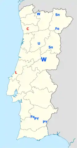 Уран. За підтвердженими запасами урану країна займає 5-е місце серед країн Західної і Східної Європи (після України, Росії, Франції, Болгарії, 1999). Відомо понад 150 родовищ руд урану, більша частина яких розташована в межах Іберійської Месети. Родовища в основному жильні (гідротермальні) і пов'язані з герцинськими порфіровидними гранітами монцонітового і біотит-мусковітового складу. Зруденіння контролюється системами крайових розривів, що розділяють тектонічні блоки. Рудна мінералізація представлена настураном, урановими чернями, кофінітом, уранофаном, отенітом і торбернітом. Зрідка зустрічаються родов. осадового типу. Рудні тіла пластові з уранофосфатною мінералізацією локалізуються в каолінізованих і хлоритизованих пісковиках та алевролітах. Пегматитова уранова мінералізація відкрита в районі Вілар-Формозу. Основні уранорудні райони – округи Візеу (Уржейріса) і Гуарда (Вілар-Формозу), провінція Алту-Алентежу (родовища Ніза і Каштелу-де-Віді). Близько 80% всіх запасів урану зосереджено на 15 родовищах, найбільше з яких — Ніза (27,7% загальних запасів).