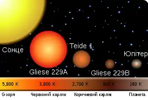 1994 року поблизу зорі Gliese 229 було виявлено невеликий супутник Gliese 229B, що мав світність у 10 разів меншу, ніж найслабші відомі зорі. А 1995 року було повідомлено, що в спектрі супутника виявлено спектральні лінії метану та водяної пари. Оскільки метан руйнується за температури 1500 K, це означало, що супутник надто холодний, аби бути звичайною зіркою.