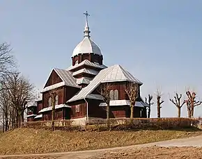 Дерев'яна церква, яка існує й до сьогодні, була збудована в 1923—1926 рр. Вона постала на місці давнішої церкви, яка існувала від 1777 р. Тепер церкву замінено на римо-католицький костел.