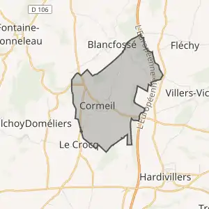 - Розташування муніципалітету Кормей на мапі Франції та сусідні муніципалітети