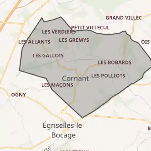 - Cornant sur le site de l'Insee, наведено за французькою вікіпедією