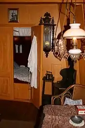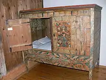 Коробка-ліжко закрите з усіх сторін обшивкою з дерева. Вхід міг закриватись фіранками чи дерев'яними дверима.