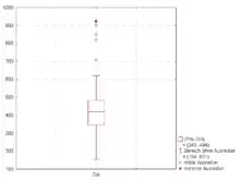 Діаграма розмаху[1][2], коро́бковий гра́фік або гра́фік «я́щик з ву́сами» (англ. box-and-whisker plot, box plot) — засіб візуалізації в описовій статистиці груп числових даних через їх квантилі. Коробковий графік може також мати лінії, які виходять вертикально з коробки (вони називаються вусами), вони вказують величину мінливості поза верхньою та нижньою межами квантиля. Викиди може бути нанесено у вигляді точок.