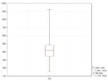 - найнижче значення даних, який знаходиться ще в межах 1,5 IQR (міжквартильного інтервалу) нижнього квартиля, а найвище значення в межах 1,5 IQR верхнього квартиля [4][5](як показано на рисунку 3)