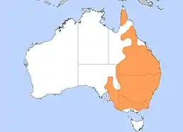 Ендемік Австралії. Досить поширений птах на сході країни. Населяє відкриті ліси, буш та рідколісся з переважанням евкаліпта.