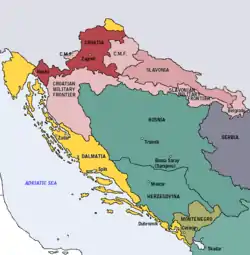 Територія відвойована у Османської імперії була реорганізована в 1745 у Королівство Славонія, підпорядковано Хорватському Королівству. У 1804, Габсбурзька монархія перетворено в Австрійську імперію, до складу якої увійшла Венеційська республіка в 1814 році, й утворено Королівство Далмація. Після австро-угорської угоди 1867 р. (за якою Австрійська імперія перетворено в Австро-Угорську імперію) і хорватська-угорської Nagodba 1868 року, Королівство Хорватія і Королівство Славонія були об'єднані в Королівство Хорватія і Славонія на терені Землі корони Святого Стефана в угорській частині імперії (Транслетанія), у той час як Королівство Далмація стала кронландом австрійської частини імперії (Цислейтанія). Королівство Хорватія і Славонія претендувало на об'єднання з Королівством Далмація, в титулі маючи назву "Триєдине Королівство Хорватії, Славонії і Далмації".
