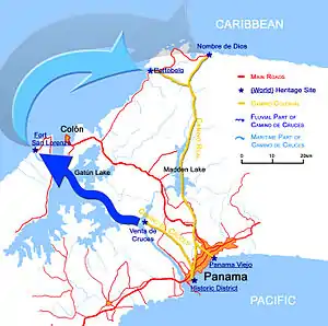В 1671 році Стара Панама була захоплена, пограбована і повністю зруйнована піратським загоном під орудою Генрі Моргана[5]. В результаті цього нападу, Королівська дорога була перенаправленна в нове місто Панама, що було засноване в 5 милях (8 км) на південний захід[6].