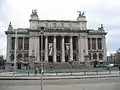 Споруду з величним фасадом проєктували архітектори Якоб Віндерс (1849—1936) та Франс ван Дейк (1853—1839). Будівельний період тривав з 1884 до 1890 року. Декорування закінчено 1894 року. Головний фасад споруди прикрашають дві бронзові колісниці Слав, розповсюджений варіант монументального декору в пору панування історичних стилів (скульптор Томас Вінсотт). Як декор використані також алегоричні скульптури архітектури, живопису, скульптури і графіки та медальйони з портретами художніх авторитетів минулого, серед котрих Ян ван Ейк, Боецій ван Больсверт, Франс Флоріс, Квентін Массейс, Еразм Квеллінус молодший, Пітер Пауль Рубенс тощо.