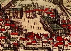 Старі описи та розкопки свідчать, що будівля мала три поверхи та була організована у кілька крил квадратної форми з центральними подвір'ями навколо лікарняної каплиці. Каплиця розташовувалася посеред ансамблю і мала масивну вежу в східному кінці нави.
