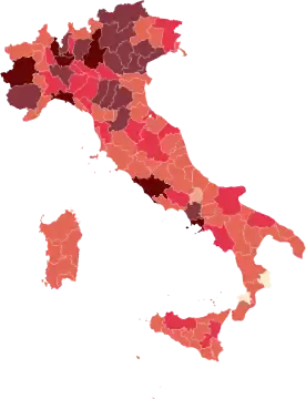 Загалом в Італії при вдвічі меншій кількості заражених летальність від коронавірусу у 8 разів вища, ніж у Китаї. В епіцентрі спалаху, Ухані, летальність від вірусу становила 1,4 %, натомість у Італії цей показник на 19 березня сягав 8,3 %[12].