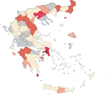 ![]() Кількість підтверджених випадків в Греції (на 29 березня):[1]