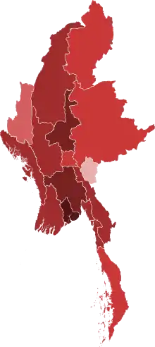 - Myanmar COVID-19 Карта поширення коронавірусної хвороби у М'янмі