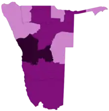 Станом на вересень 2020 року Намібія входила до числа 18 країн із найбільшою кількістю випадків захворювання на COVID-19 в Африці. Хоча найбільша кількість випадків хвороби в країні та кількість померлих від коронавірусної хвороби зареєстрована в області Еронго, проте в області Кхомас розпочалась висока місцева передача вірусу, внаслідок чого кількість хворих у цій області зросла в геометричній прогресії, та зрівнялась з кількістю хворих в Еронго. У середині вересня більшість карантинних обмежень були зняті після значного зменшення кількості випадків за день.