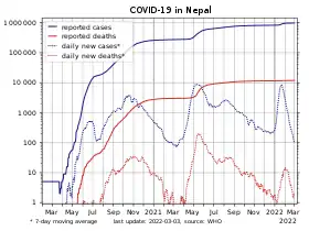 Шаблон:Increasenegative Шаблон:COVID-19 pandemic in Nepal[1] |