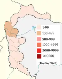 ![]() Підтверджені випадки за провінціями (на 12 червня 2020)