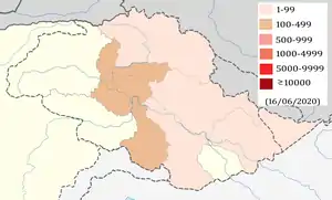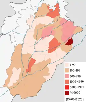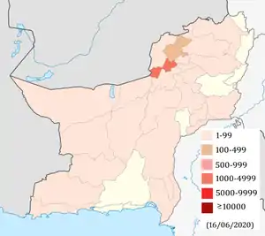 17 червня у районах Белуджистану Шахід Сікандарабад, Бархан і Шерані зареєстровано перші випадки коронавірусної хвороби. Після цього у всіх районах чотирьох провінцій Пакистану зареєстровано щонайменше один випадок коронавірусної хвороби.[121]