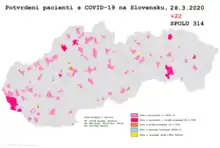 19 березня кількість діагностованих збільшилася до 123-х. Першого хворого пацієнта виявлено в окрузі Левоча[9].