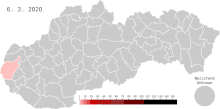 6 березня було виявлено першого інфікованого коронавірусною хворобою — Братиславський край[1].