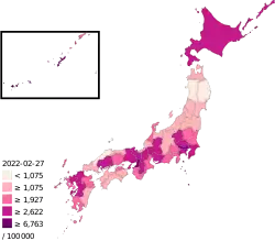 27 серпня режим надзвичайного стану було поширено на префектури Хоккайдо, Міягі, Гіфу, Аїті, Міє, Сига, Окаяма і Хіросіма[14]. Протягом серпня-вересня, після щеплення зіспованою партією вакцини Moderna в країні було зафіксовано щонаменше три летальних випадки[15].