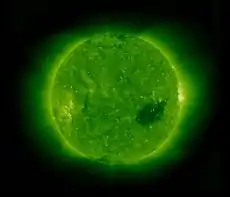 Корональні діри — області у сонячній короні, де знижена густина та температура плазми. Як правило, густина в таких областях приблизно в сто разів менша, ніж у звичайних областях корони. Поява корональних дір фіксується за допомогою зображень, отриманих у рентгенівському діапазоні за допомогою супутників.