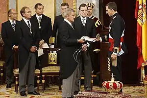 Хуан Карлос I був проголошений королем у Кортесах 1975 року, присягнув законами Іспанії та Конституцією 1978 року в Конгресі того ж року.