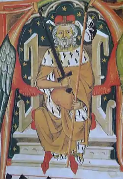 "Візьми цей вінець королівства в ім'я Отця, Сина і Святого Духа, під яким справжній божественний обранець і доблесний муж, проти всіх ворогів Церкви Христової, прав Королівством від Бога, даного тобі і твій Господь дав тобі печатку вічного блаженства, Викупитель і Спаситель Господній, Ісус, ім'я якого ти носиш на собі, радій безперестанку, що живеш і володарюєш з Богом і Святим Духом на віки віків. Амінь ".